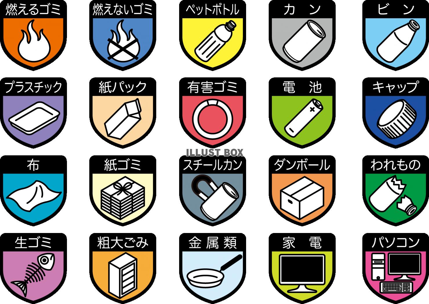 ゴミ分別 アイコン マーク セット:イラスト無料。