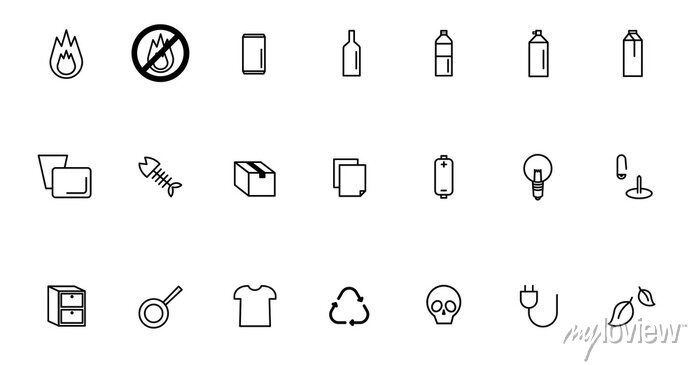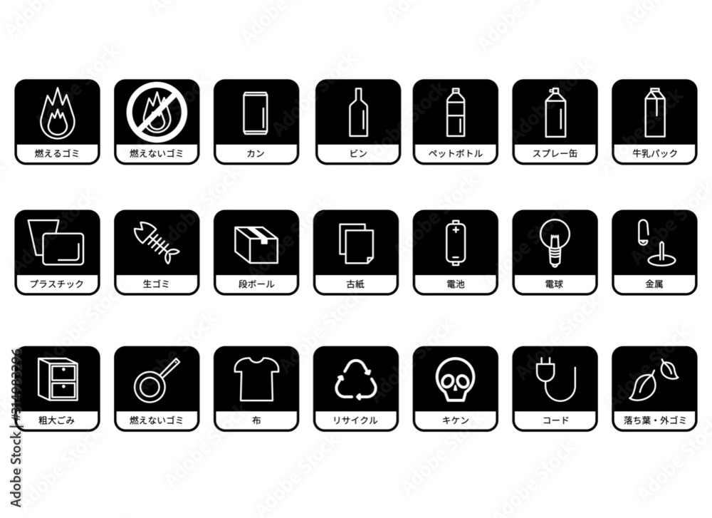 Vetor do Stock ゴミ一覧 生ゴミ、燃えるゴミ、燃えないゴミなど のアイコンAdobe Stock。
