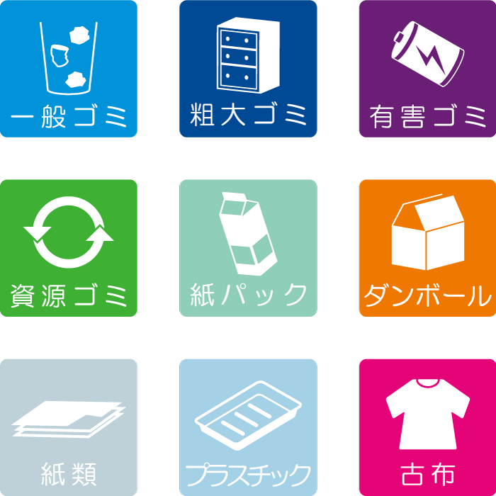 フリーイラスト粗大ゴミなどの9種類のゴミの分別アイコンのセットでアハ体験GAHAG著作権フリー写真・イラスト素材集 - GAHAG著作権フリー写真・イラスト素材集。