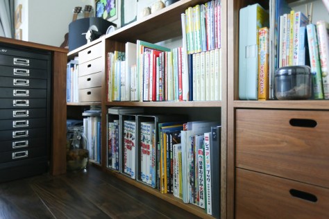 本棚収納 本・雑誌・アルバムの収納 パイン材ユニットシェルフ 無印・ニトリファイルボックス使った整理 before→after。