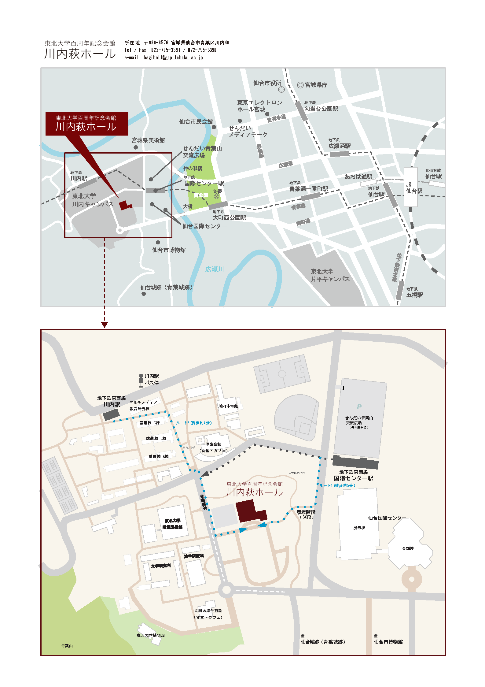 アクセス川内萩ホール - 東北大学百周年記念会館。