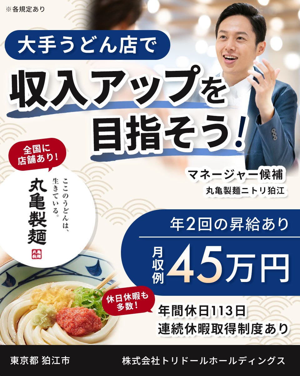 丸亀製麺ニトリ狛江店のアルバイト パート求人情報 - 狛江市 ID:AB0410110594アルバイト・バイト・パートの求人情報ならイーアイデム。