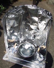 太陽光で調理するソーラークッキング: 高齢者の暇つぶし。