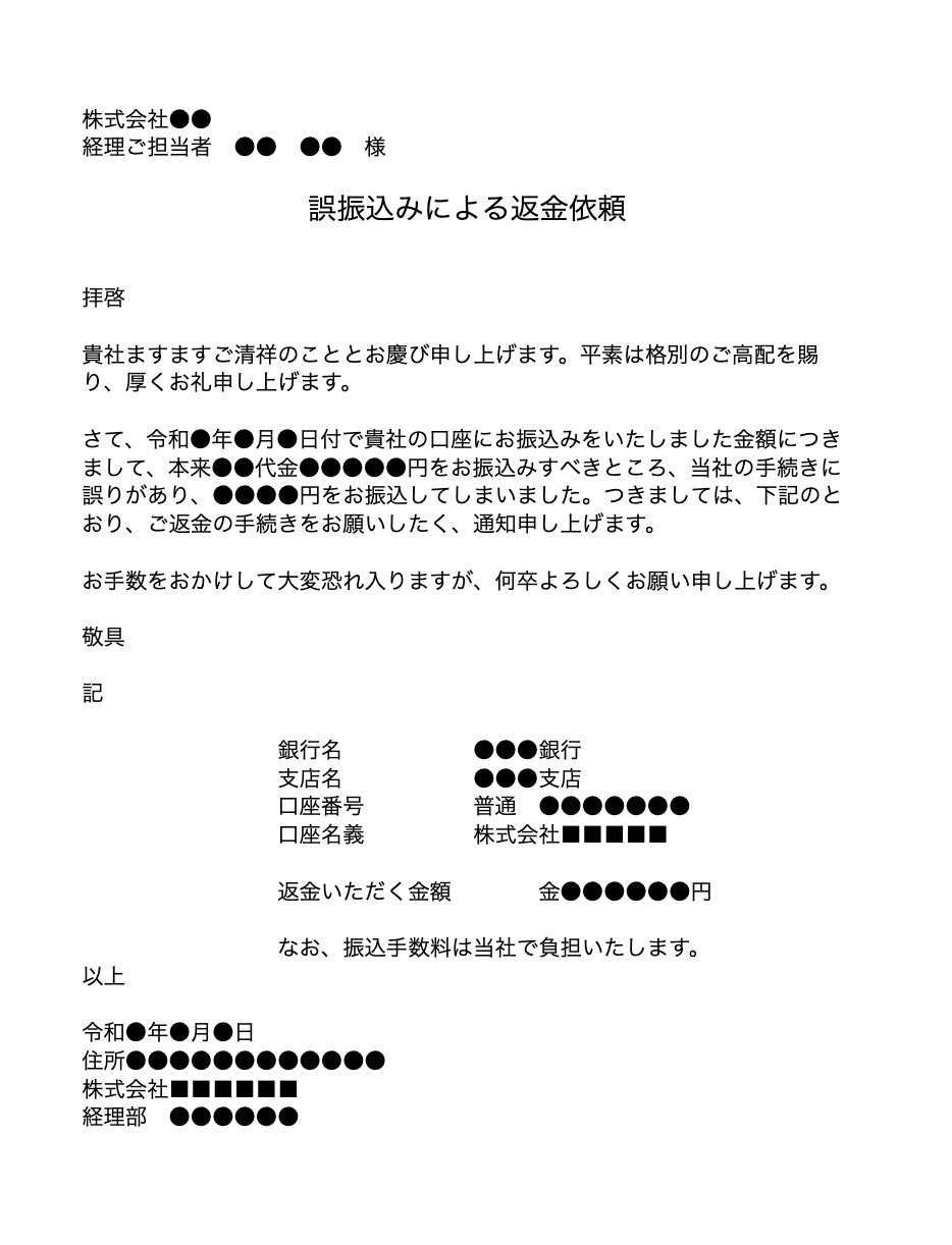 返金のお知らせの手紙 ご案内・文面の例文・見本ありで書き方が簡単 ビジネス文章の書式となります。ワードにて、書き方と例文。