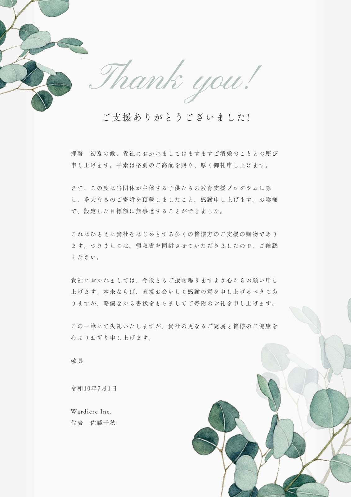 寄付金の礼状の無料テンプレート素材 ワード無料テンプレート Mac・Windows 『ひな形ジャーナル』。