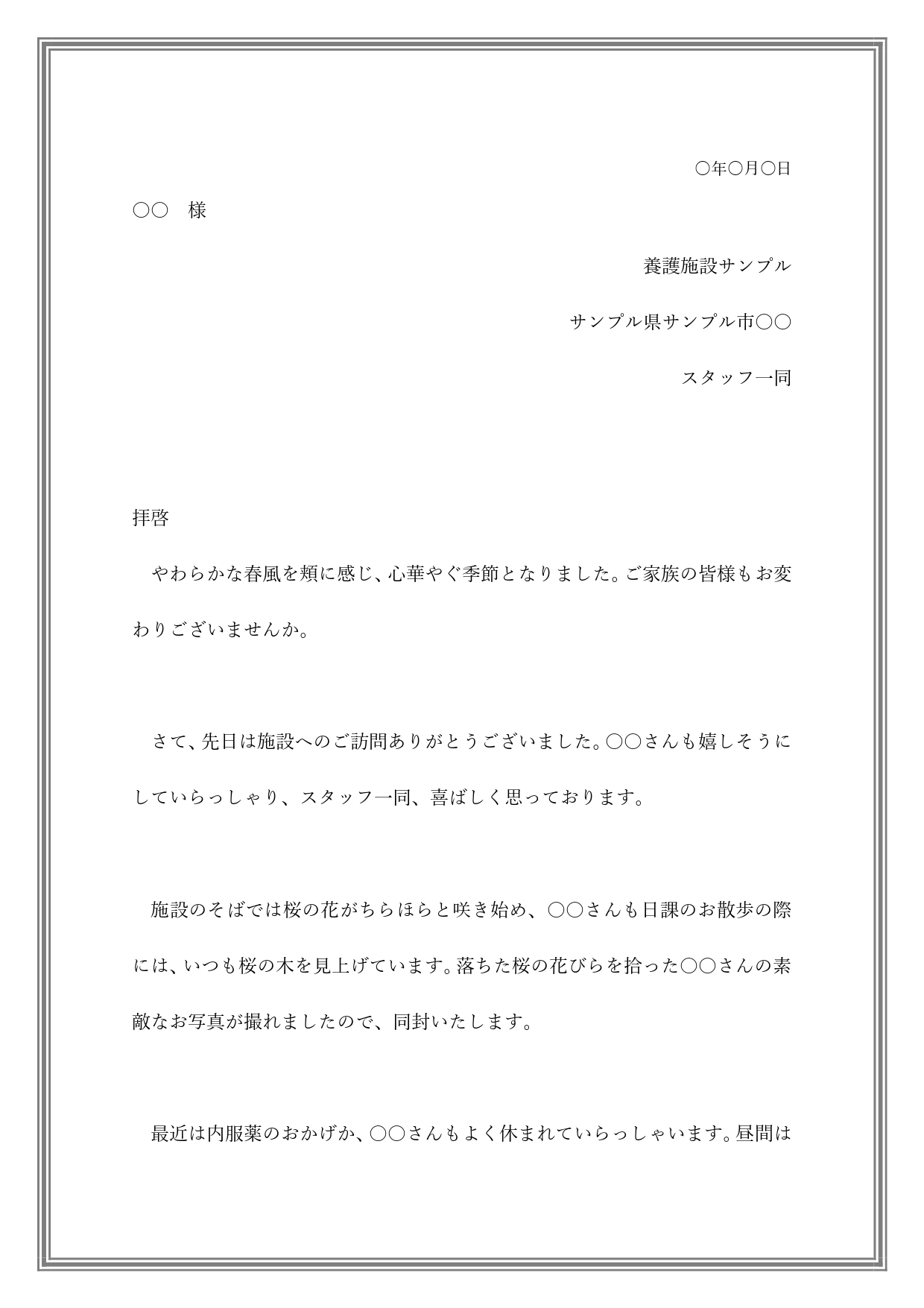 介護施設からご家族への手紙 例文ありの書き方が簡単 ワードで簡単に編集が出来る文章のテンプレートとなります。介護施設の入。