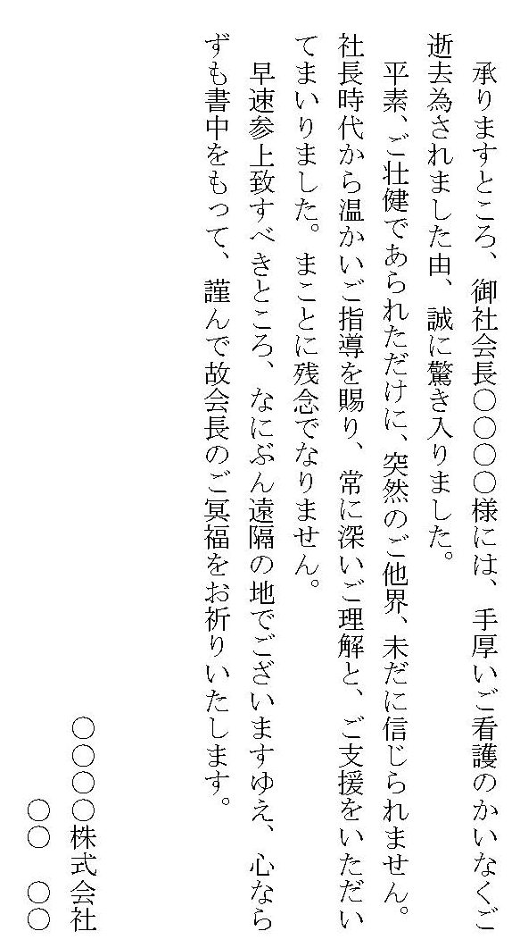 お悔やみ状02のテンプレート・例文:Word ワードテンプレート・フリーBiz。