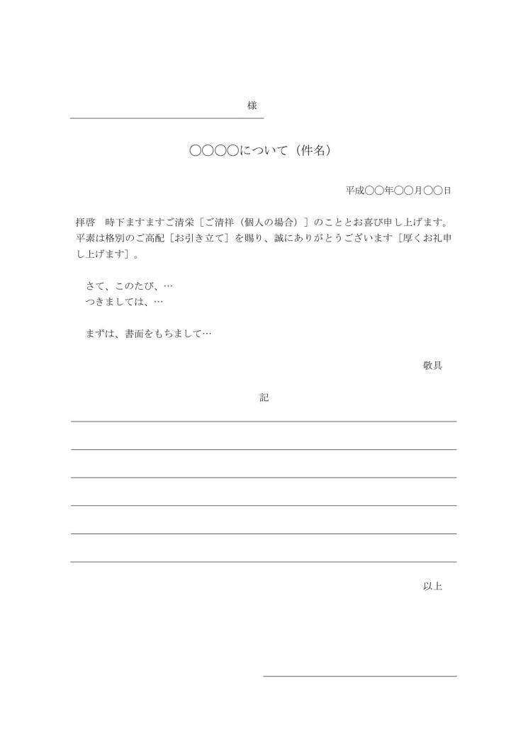 文書 テンプレートの無料ダウンロード: 社外ビジネス文書の共通の書式・フォーマット 手紙形式宛名が一番上日付が上。