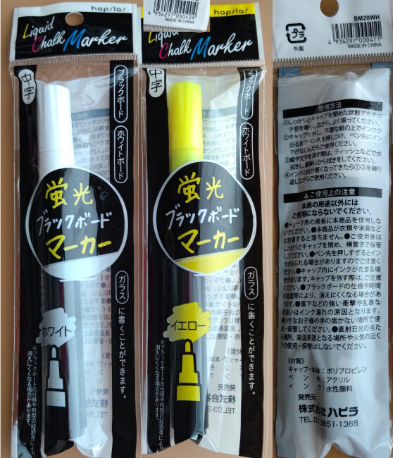 100均の蛍光ブラックボードマーカー商品一覧。色の種類 ダイソーとセリア、キャンドゥ。