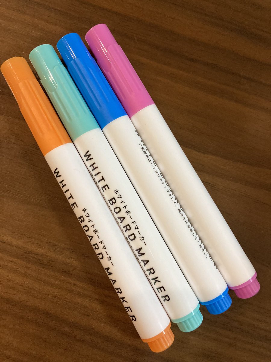 100均のホワイトボードマーカー商品一覧。太さや色、本数 ダイソーとセリアで100円。