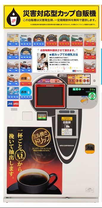 災害時のサポート製品ラインナップ自動販売機の設置から運営管理までトータルサポートのアペックス。