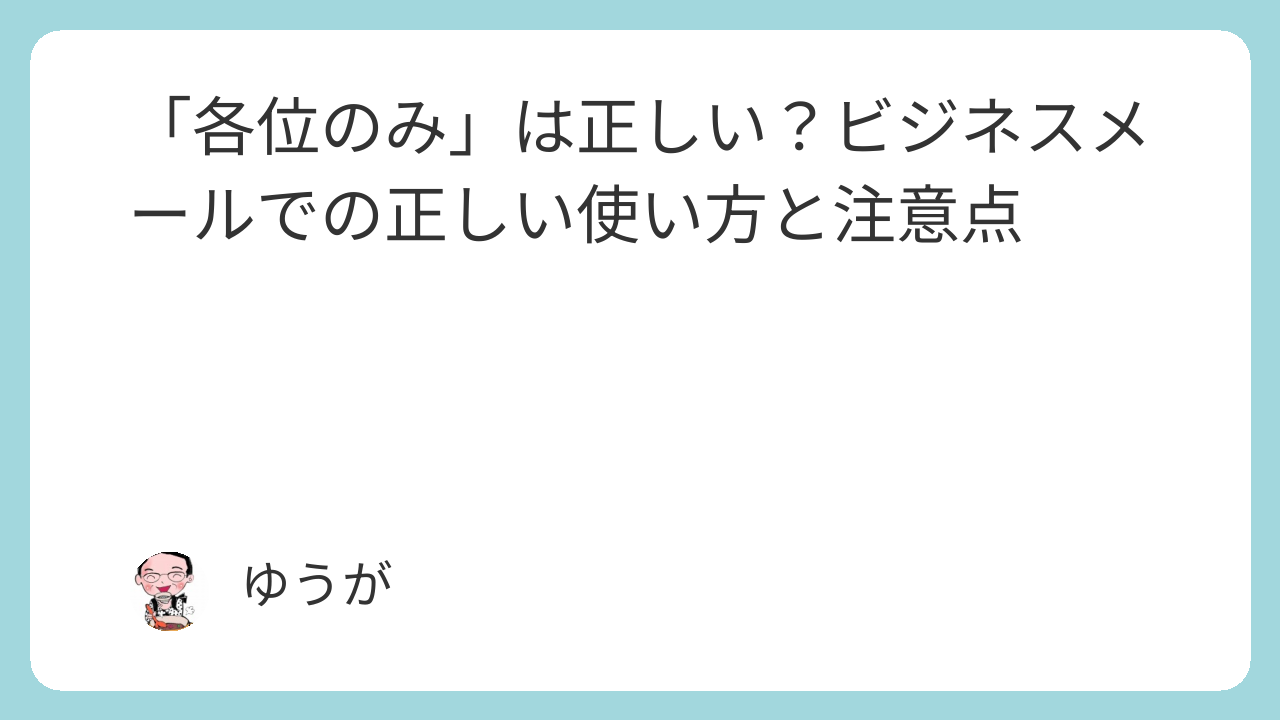 各位のみ」は正しい?ビジネスメールでの正しい使い方と注意点ゆうがのお散歩道。