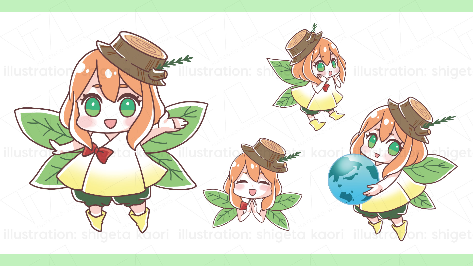 株式会社コーポレーション・クリエイト様の企業マスコットキャラクター制作いたしましたしげたカオリ -児童向け・女性向け"かわいい"特化イラストレータ。