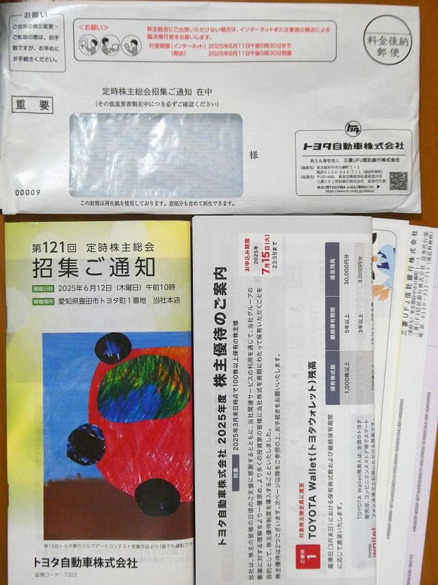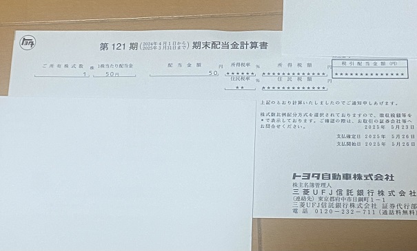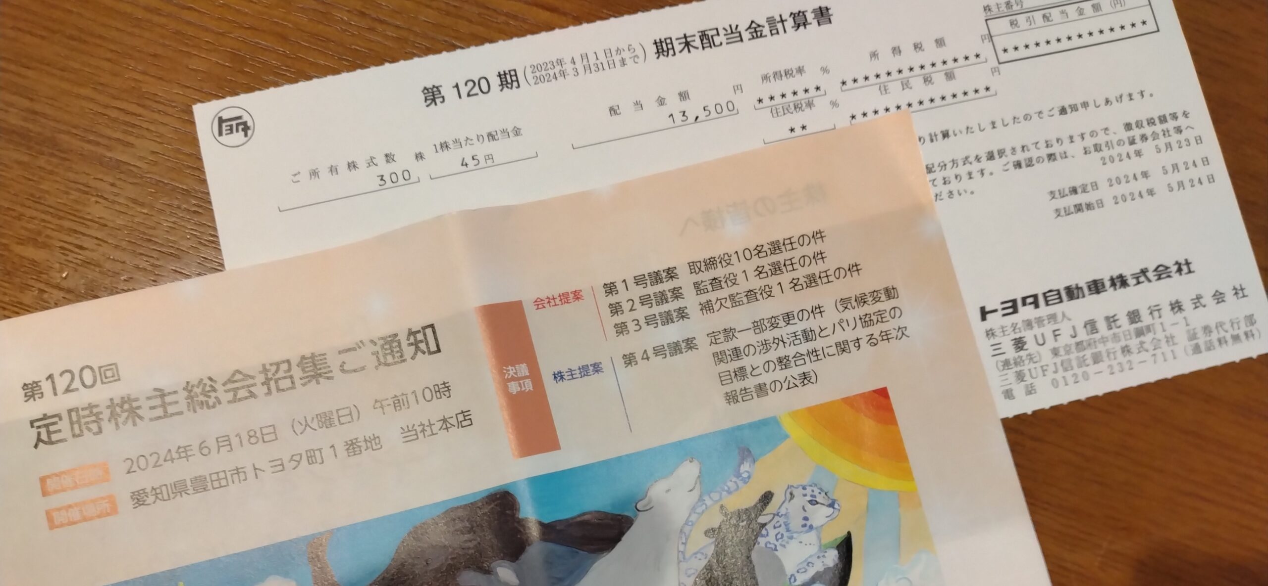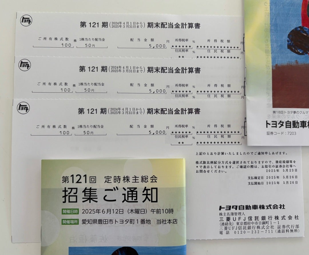 トヨタ自動車株式会社より配当金の案内が届いていました。男の子一児ママの投資メインの徒然ブログ。