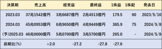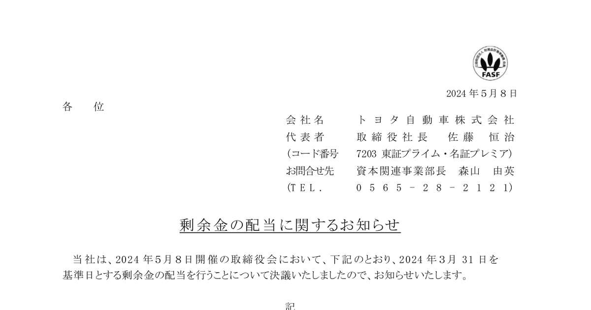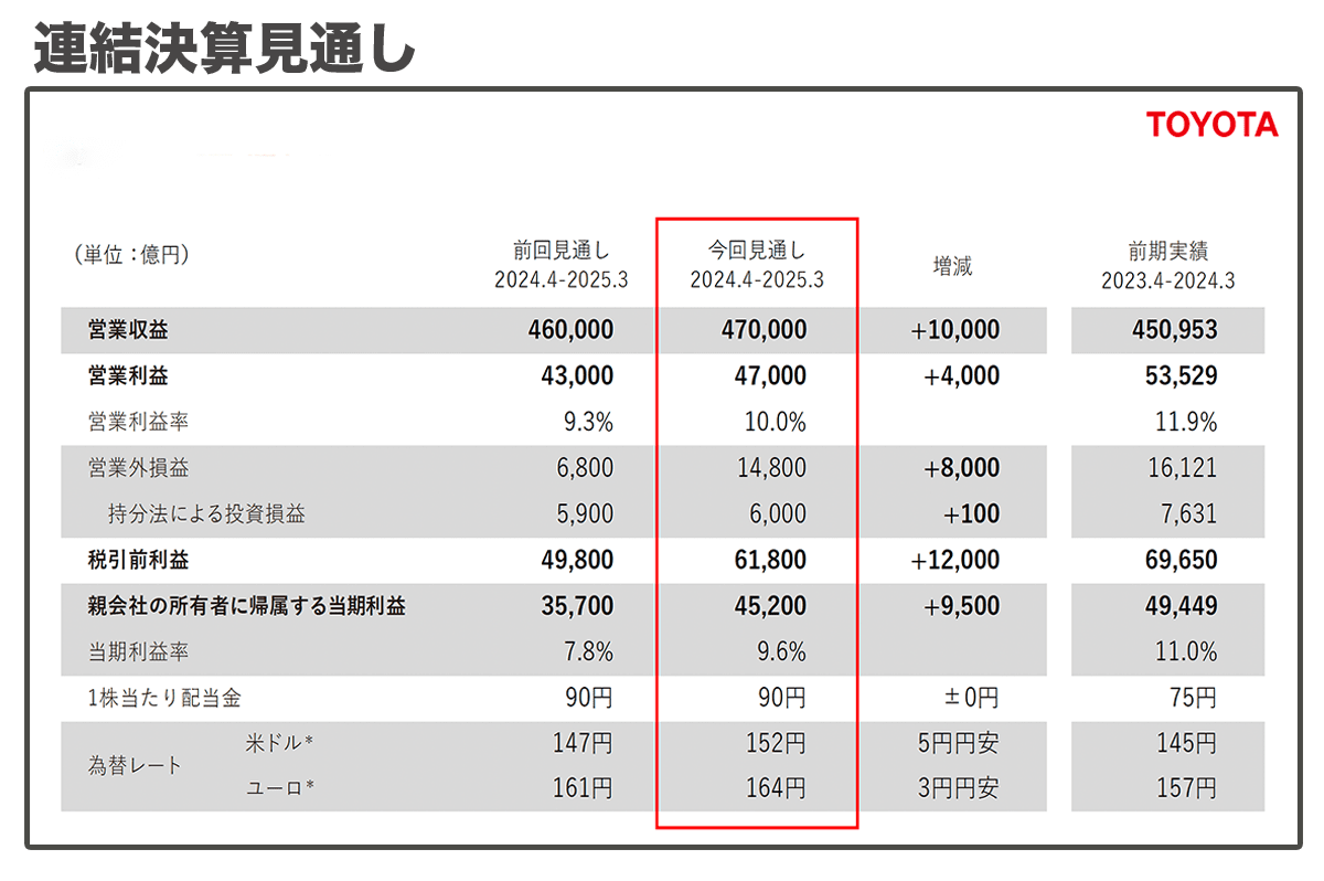 トヨタ自動車 7203 、5期連続の「増配」を発表し、配当利回り3.5%に! 年間配当額は5年で2倍に増加、2025年3月期は前期比15円増の「1株 あたり90円」に!配当 増配・減配 最新ニュース!ザイ・オンライン。