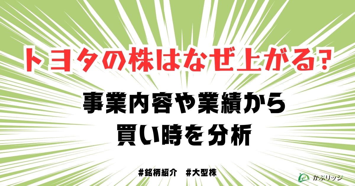 トヨタ自動車の株価はなぜ上がる?事業内容や業績から買い時を分析 トヨタ自動車:7203かぶリッジ。
