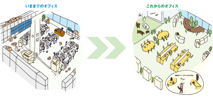 社員の働き方を変えるオフィスレイアウトオフィス移転・オフィスリニューアルのプラス株式会社ファニチャーカンパニ。