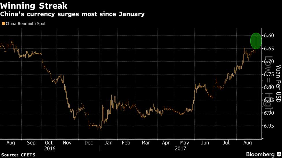 中国人民元、オーバーナイトで急上昇-7カ月ぶり大幅高 - Bloomberg。