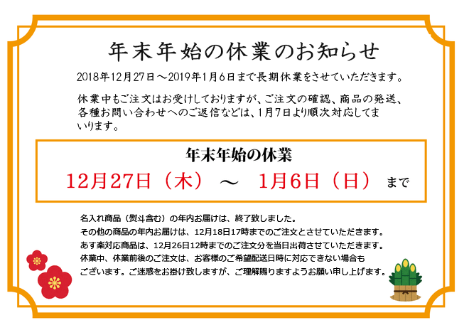 年末年始休業のお知らせ - 古川紙工オンラインショップ。