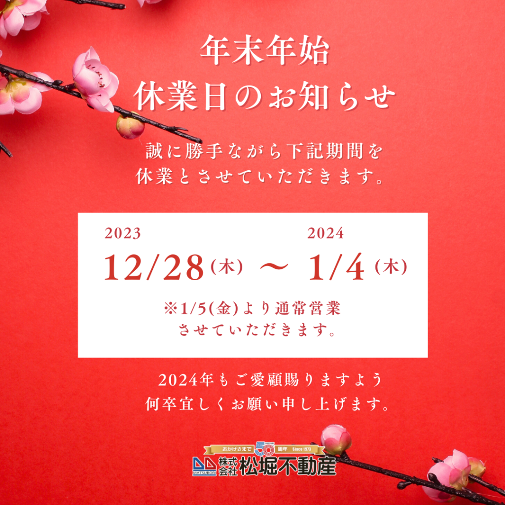 年末のご挨拶 年末年始休業のお知らせ株式会社松堀不動産。