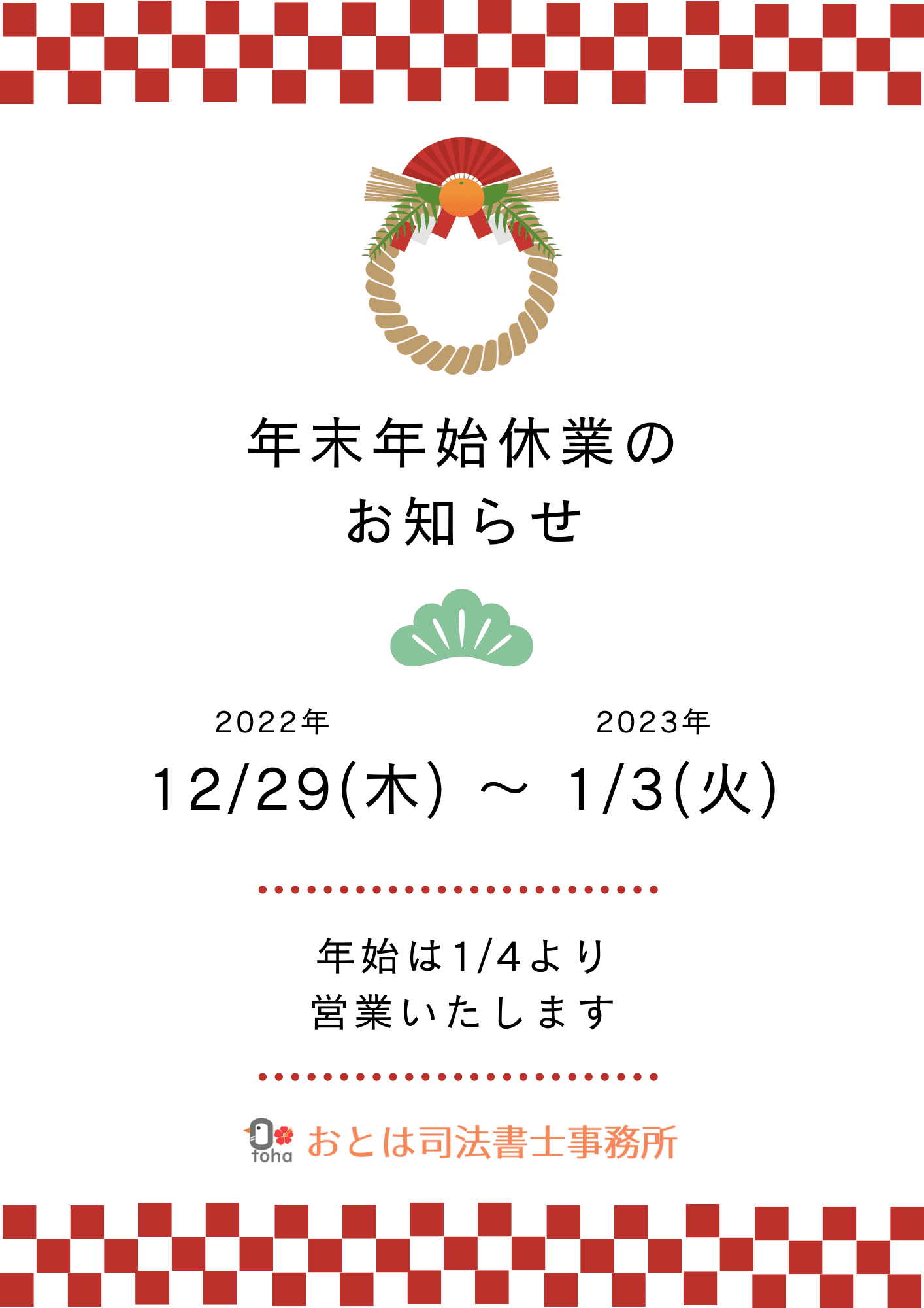 年末年始休業のお知らせ 2023年12月〜2024年1月総合人材サービス ワークスタッフ。