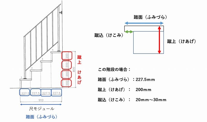 階高、踏み面、掛け幅、蹴上げ、鼻の出寸法とは何ですか。 階段について- 階段 - Panasonic。