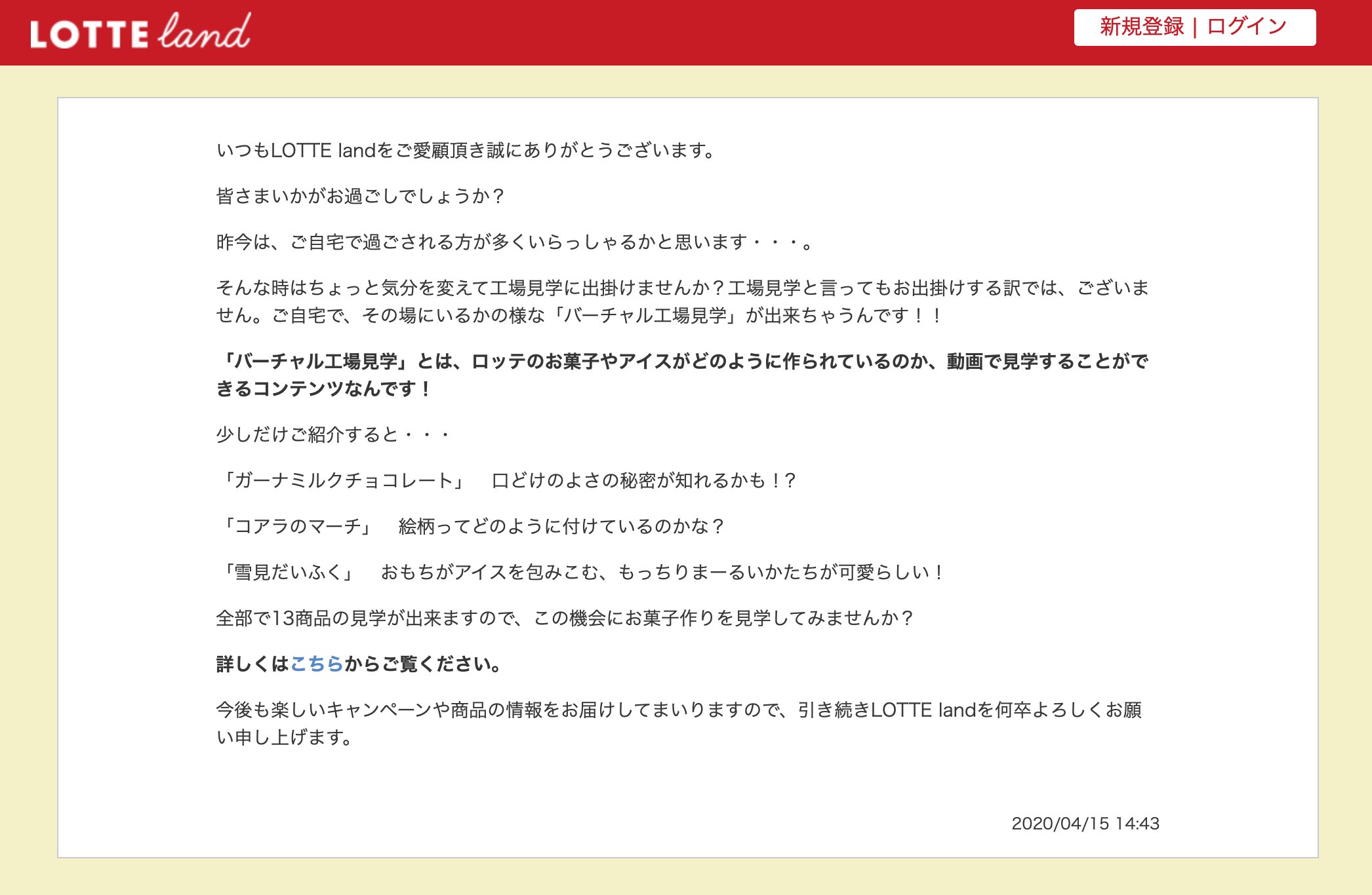 ねこぱん on X: "ずいぶん前に登録したきりのロッテのサイトから「ご自宅でお菓子の工場見学 をしてみませんか?」というタイトルのメルマガが届いて思わずクリック。公式サイトのバーチャル工場見学へ飛ぶ。元からあるコンテンツだけど、このタイミングこの切り口での配信。