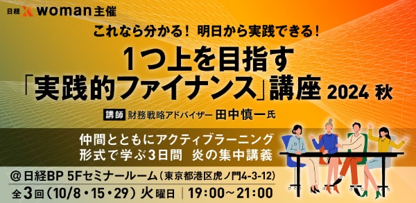 終了 7 8~全3回 生きた知識を体得するファイナンス3日間集中講座:日経xwoman。