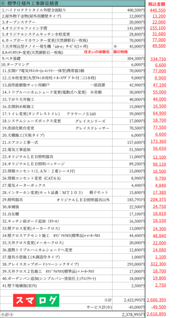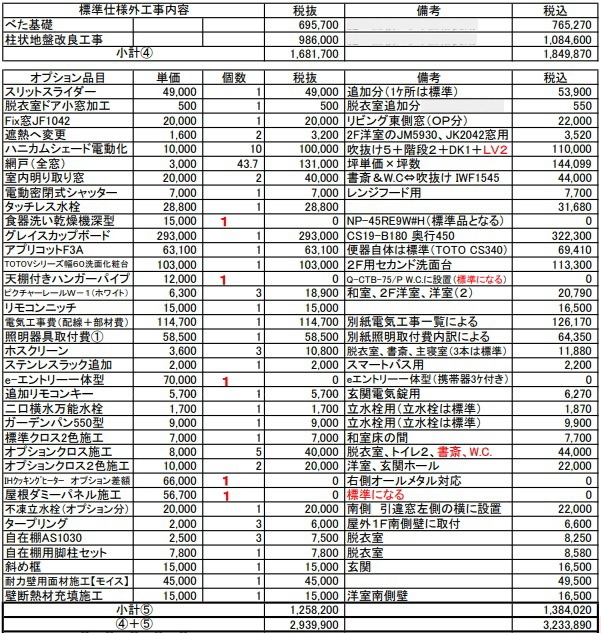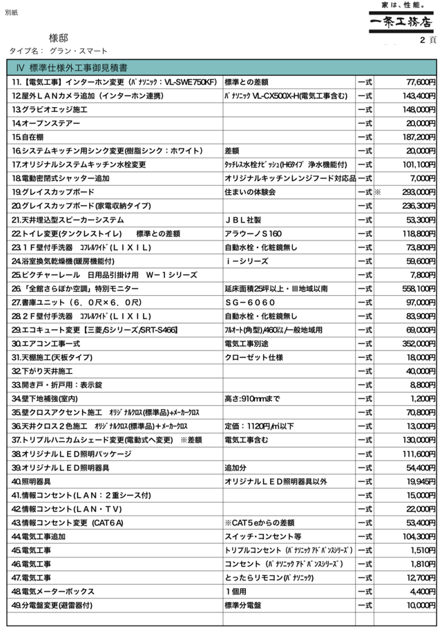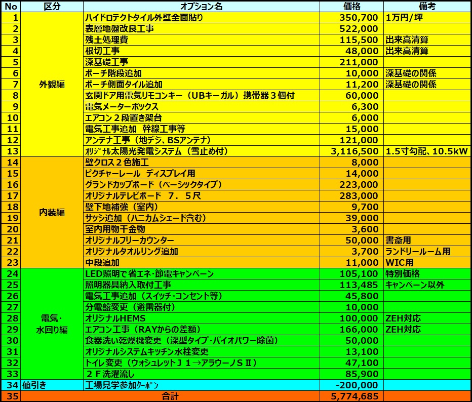 一条工務店 採用したオプション一覧と費用 計32点で総額は160万!きたきつねの快適巣作り〜一条工務店。