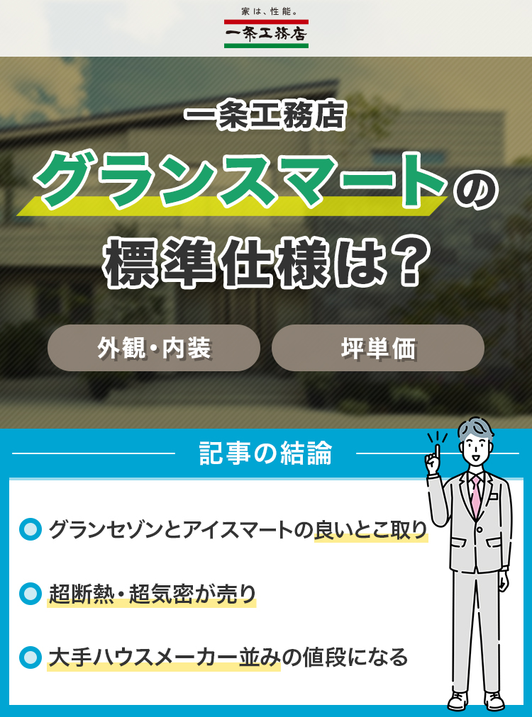 一条工務店のグランスマートの標準仕様は?グランセゾン・アイスマートと比較 - ハウスメーカー大学。