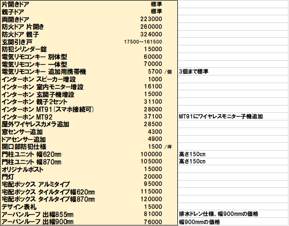 一条工務店で採用 オプション・追加工事37項目「価格とオススメ」。
