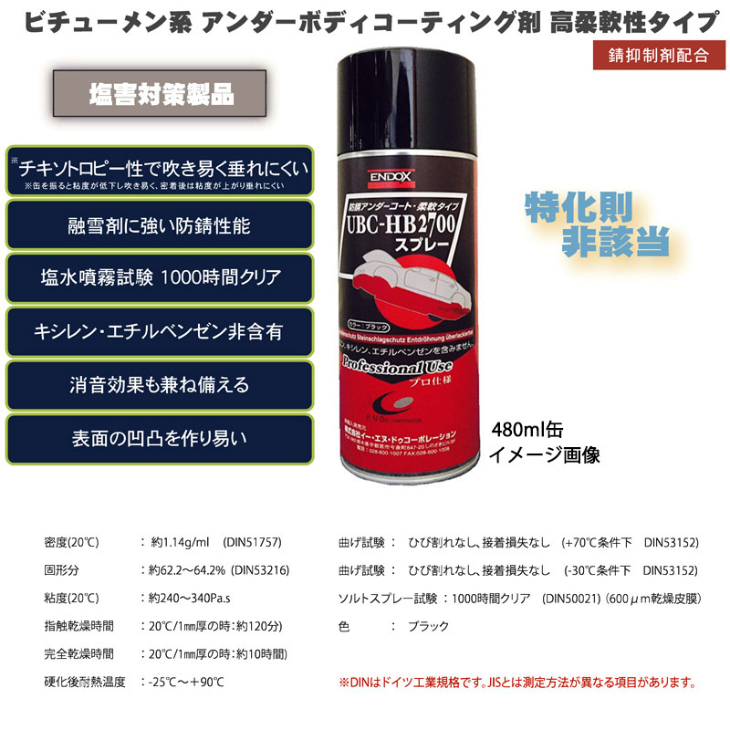 ビチューメン系 アンダーボディコーティング剤 スプレー UBC-HB2700 ブラック 480ml 24本 ENDOX 80036 法人のみ配送代引き不可 送料無料メンテナンス関連,その他プロツールショップヤブモト。