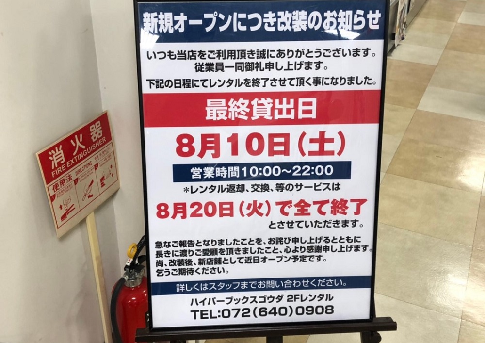 茨木市 悲報!レンタルビデオ屋さんがまたひとつなくなるようです。号外NET 茨木。