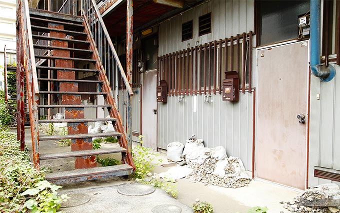 鉄階段のサビを 無駄なく 補修する方法横山鉄工所アパートの鉄骨階段の補修やサビ補修は横山鉄工所へ。