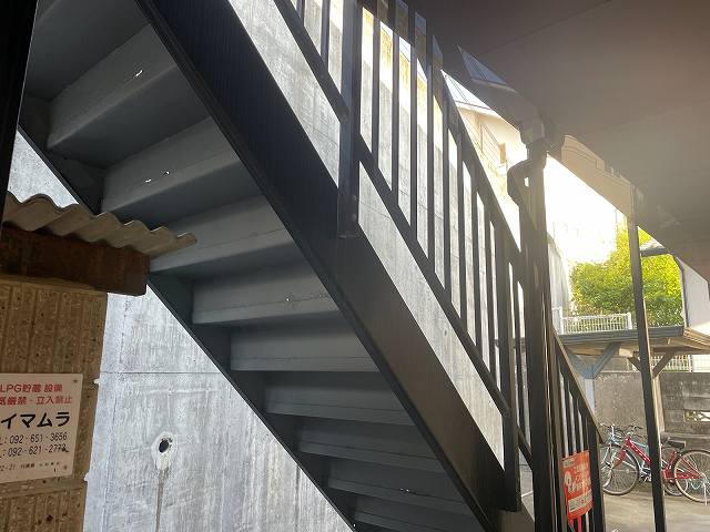福岡市中央区で軽量鉄骨造りアパートの屋外階段塗装を施工しました福岡で外壁・屋根塗装、外装リフォームは街の外壁塗装やさん福岡店。
