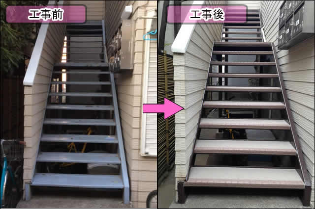 鉄骨階段を塗装修繕しました - 誠和コーティング。