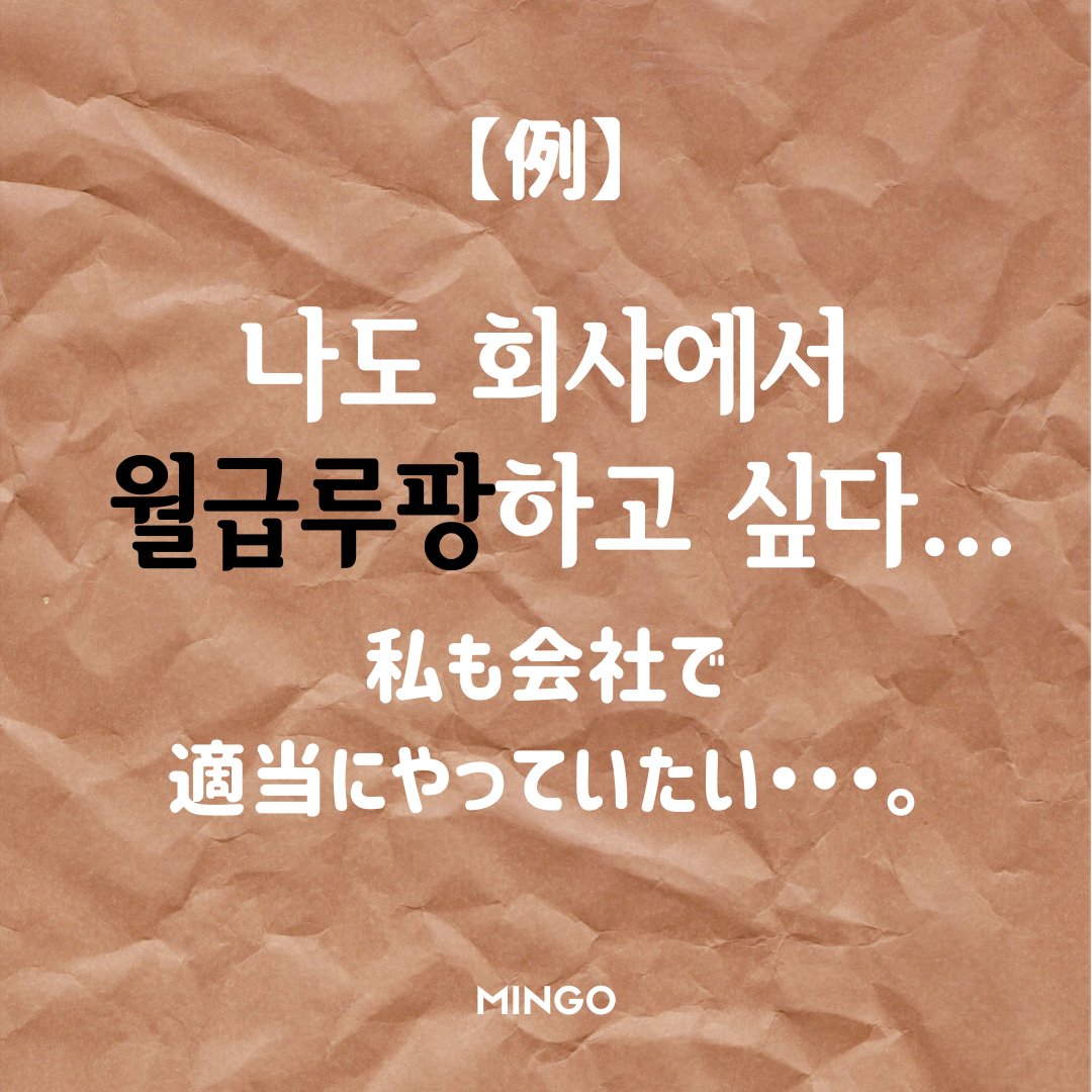 オンライン専門の韓国語スクール Mingo on X: " 会話でよく使われる、面白い韓国語表現월급루팡➡️給料泥棒 월급 給料루팡 怪盗アルセーヌルパン の意味。若者言葉で、もらっている給料分働かずに、サボる人のこと。略して월루と言ったりもします💰 例文はこちらを。