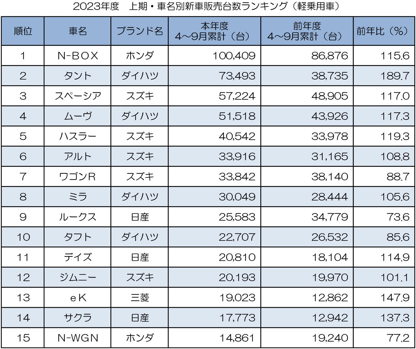 新車販売台数ランキング 軽自動車 2023年度 上半期。トップは9年連続でN-BOX!の画像ギャラリーKURU KURA くるくら- クルマ のある暮らしをもっと豊かに、もっと楽しく。