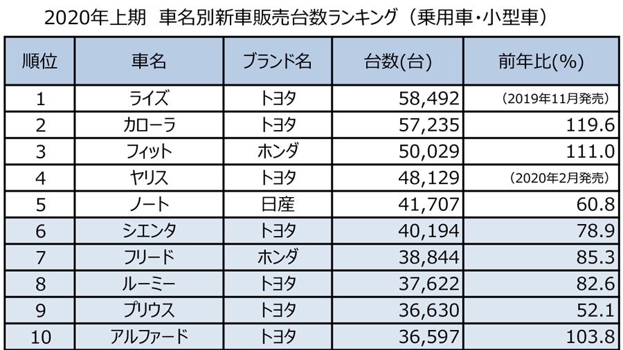 2020年上期・新車販売台数ランキング!1位はライズ 乗用車・小型車編KURU KURA くるくら。