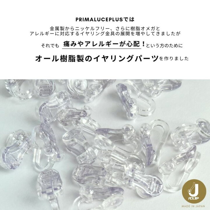 楽天市場 日本製 樹脂イヤークリップ コンバーター 1ペア入ALL CLEAR J CLIP ジェイクリップ イヤリング 透明痛くならないイヤリング 芯立 カン付 オールクリア 金属アレルギー対応 アレルギーフリー PRIMA LUCE PLUS プリマルーチェプラス :PRIMA LUCE PLUS楽天市場店。