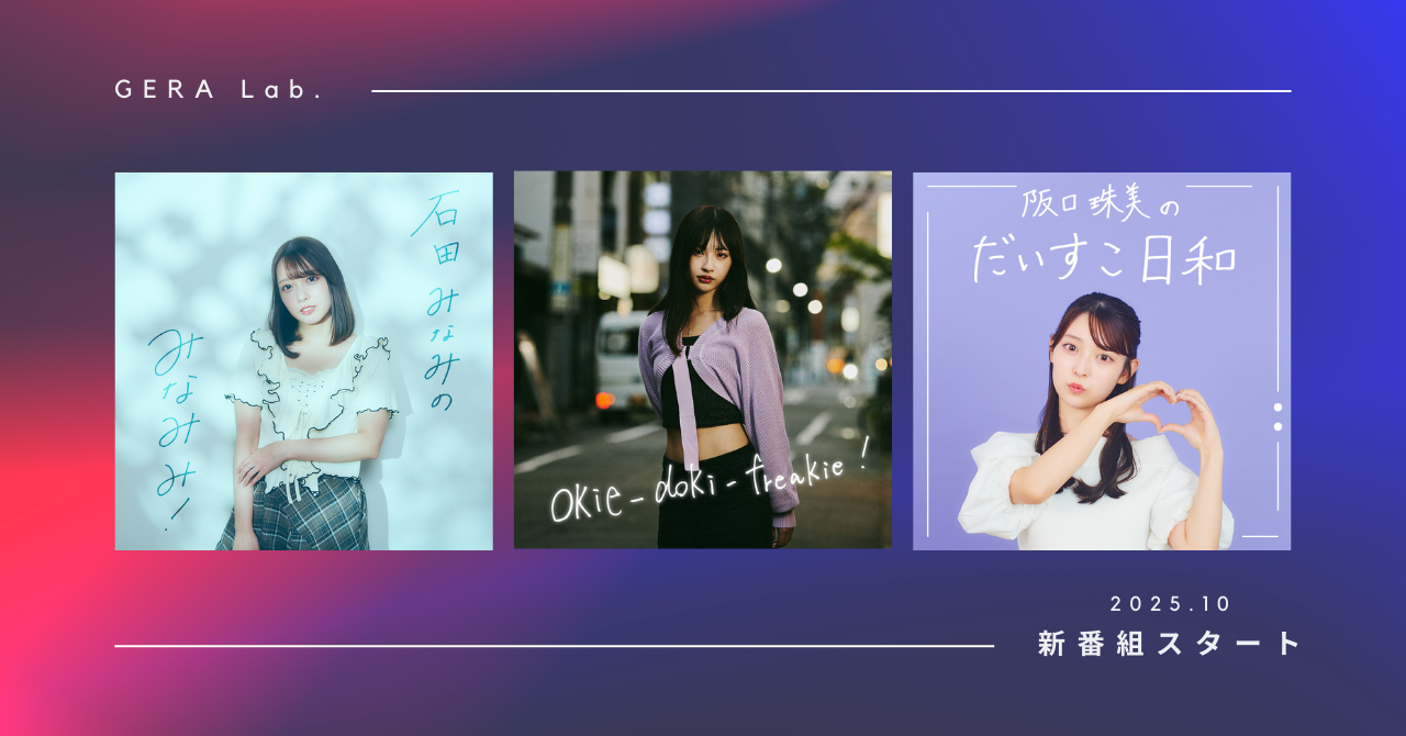 お笑いラジオアプリGERA GERA Lab. 新たに3番組スタート ー石田みなみ、沖侑果、阪口珠美ーニュースリリース株式会社ファンコミュニケーションズ。