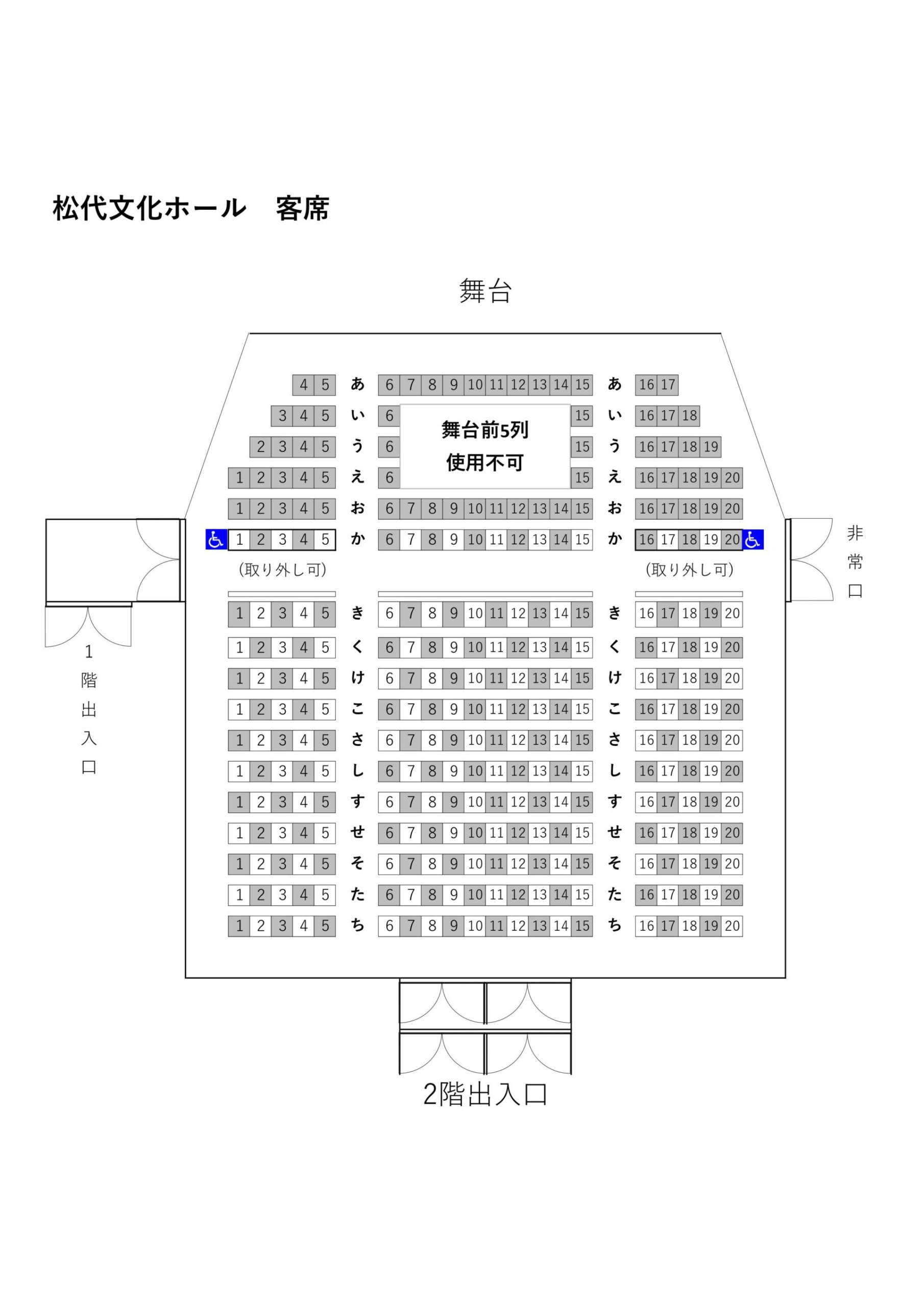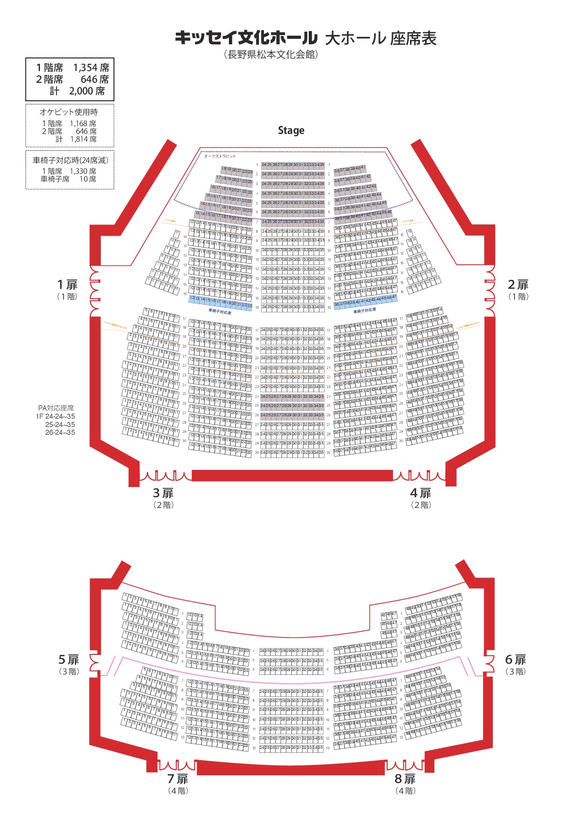 キッセイ文化ホール 長野県松本文化会館大ホール座席表 1階。