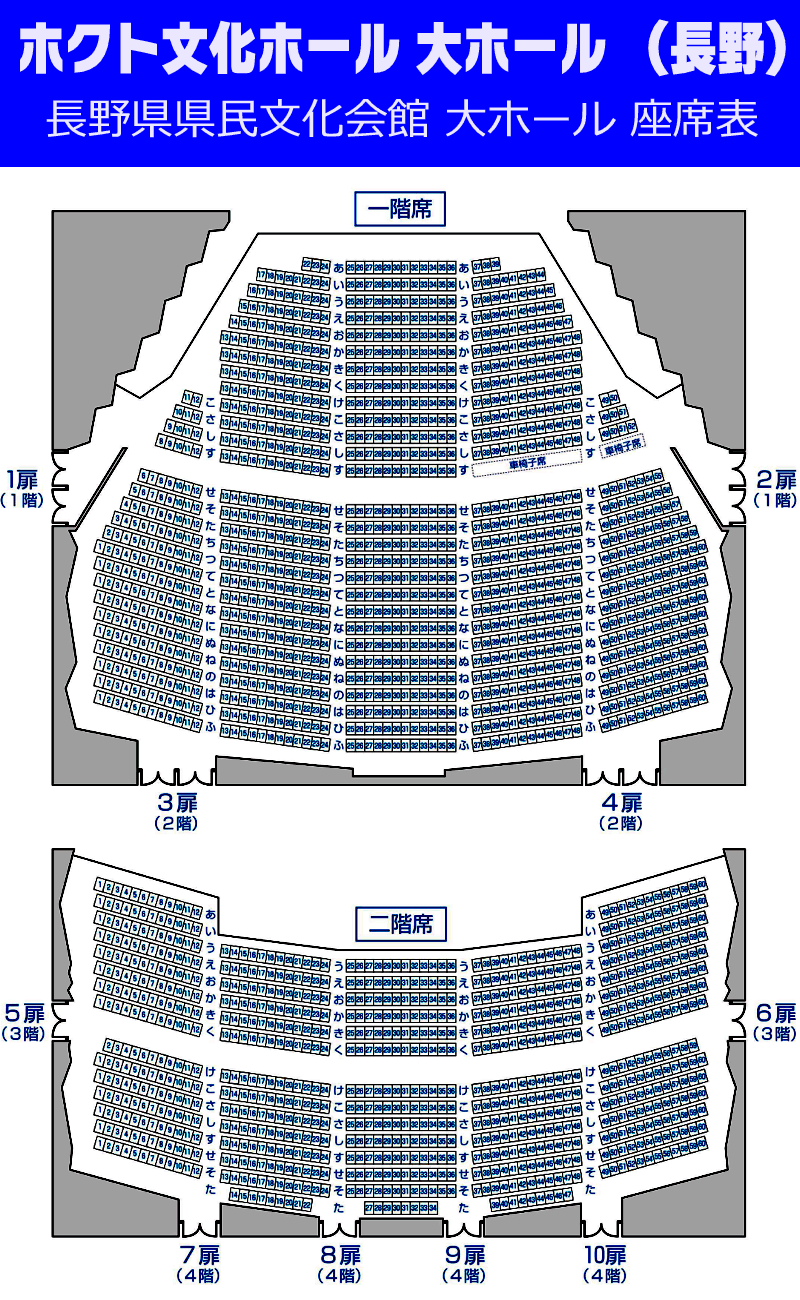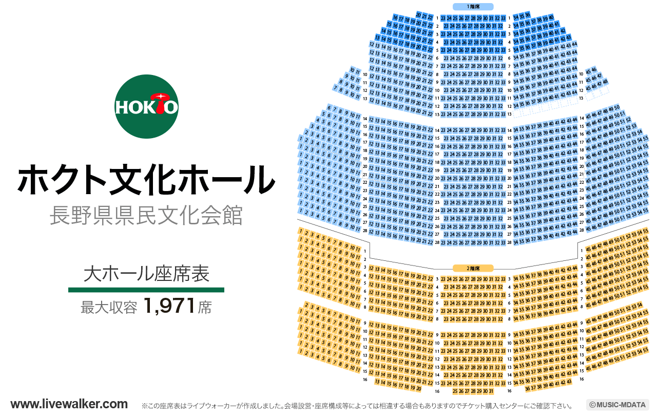 長野県県民文化会館 ホクト文化ホール の座席表と会場情報座席ガイド。