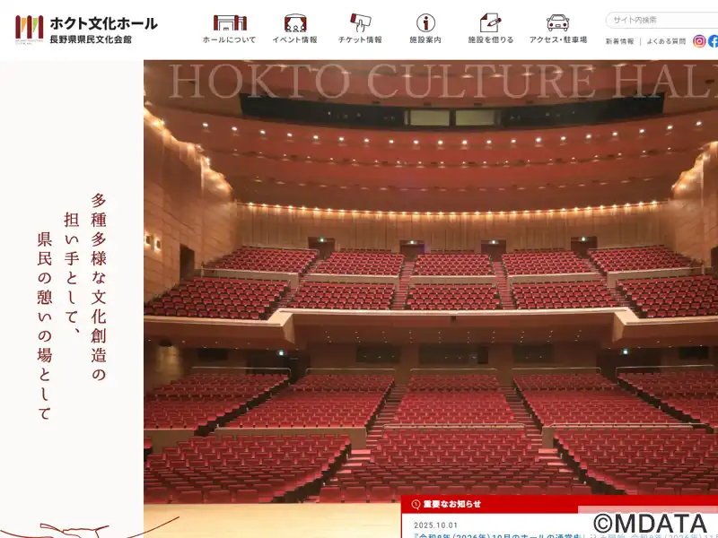 施設情報 ホクト文化ホール - 一般財団法人 長野県文化振興事業団。
