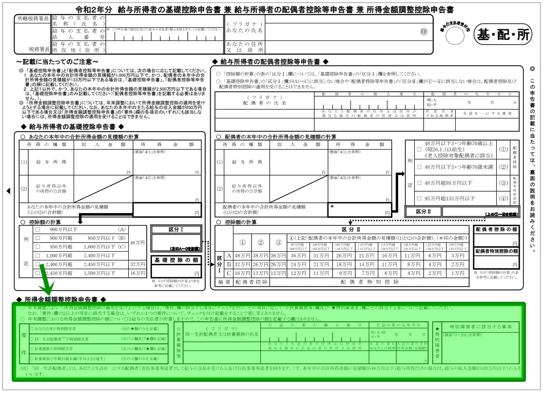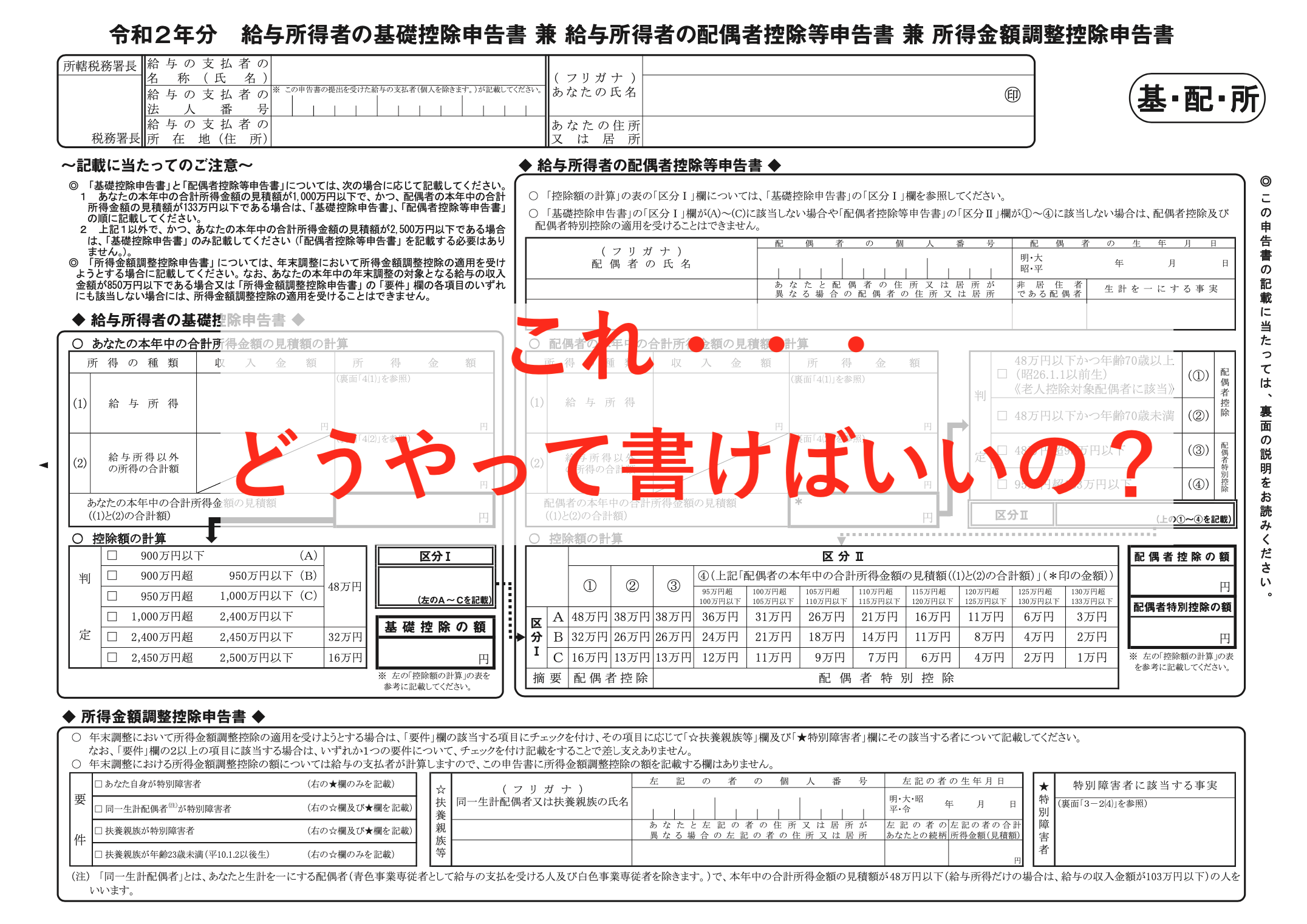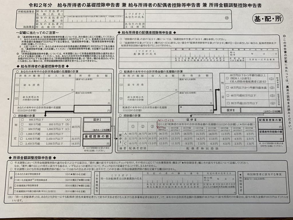 令和2年分基礎控除申告書兼給与所得者の配偶者控除申告書兼所得調整控除申告書」の書き方 令和2年度年末調整Siq ~道の先にあるものは。