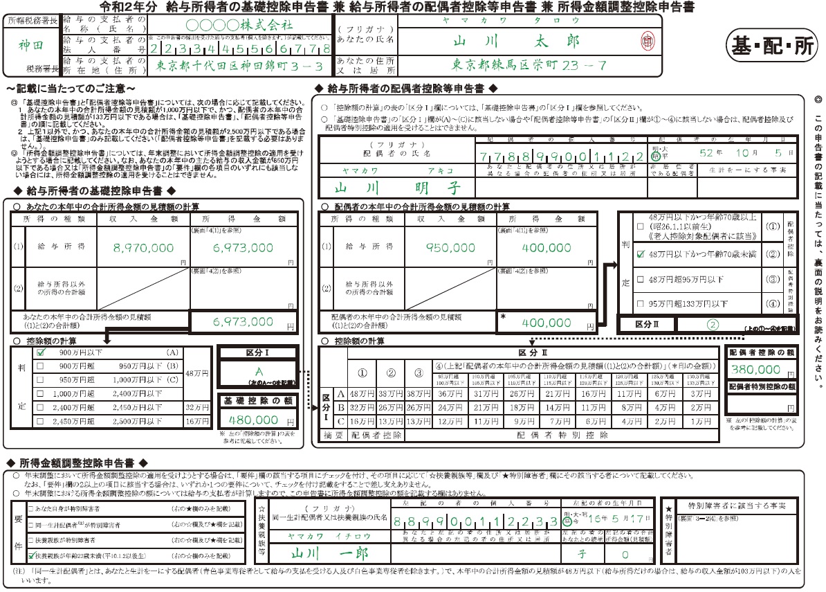 令和2年分 基礎控除・配偶者控除等・所得金額調整控除申告書の書き方 計算例付き年末調整合同会社の設立から解散まで。