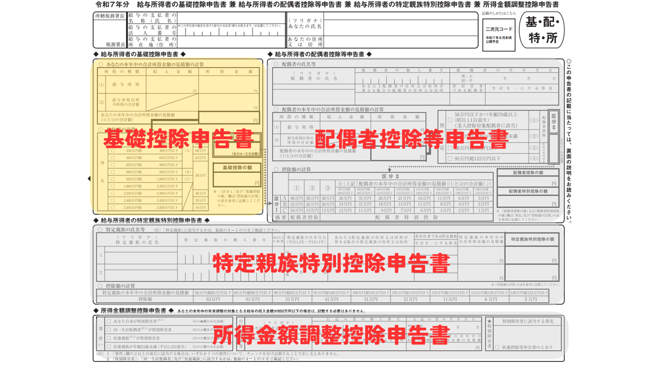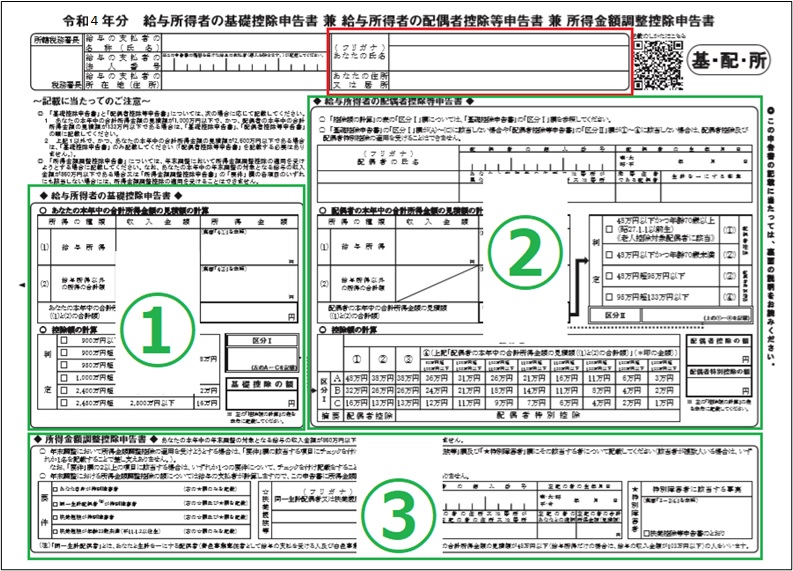 基礎控除申告書兼配偶者控除等申告書兼所得金額調整控除申告書の書き方 令和6年 4: 年末調整の書き方。