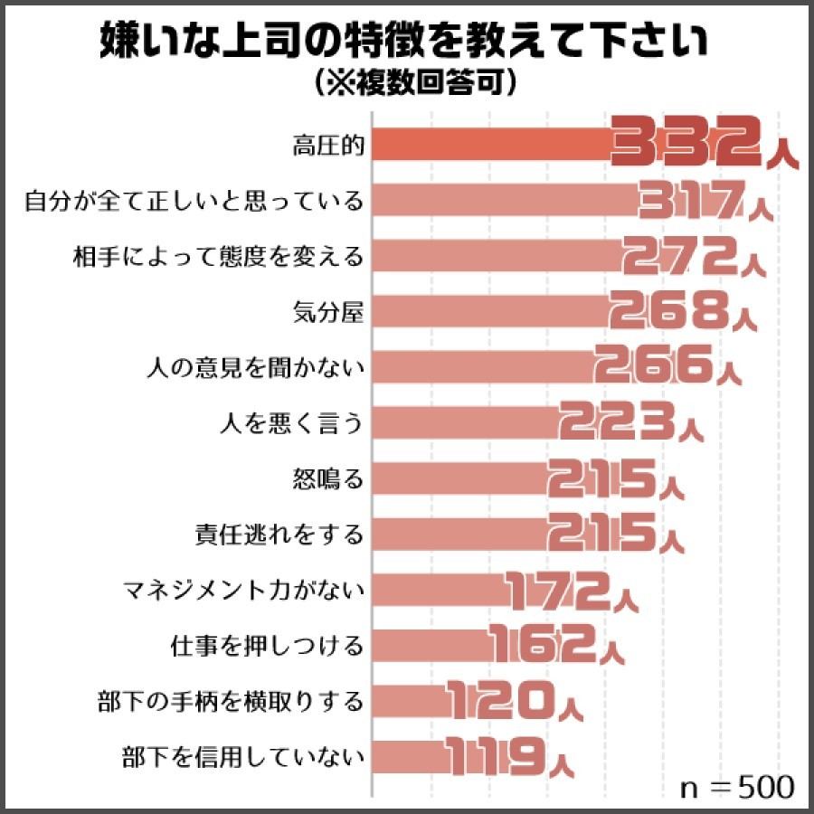嫌いな上司の特徴ランキング!男女500人アンケート調査株式会社ビズヒッツのプレスリリース。