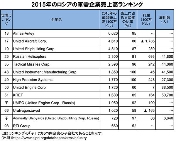 2015年のロシアの軍需企業売上高ランキング : ロシア・ウクライナ・ベラルーシ探訪 服部倫卓ブログ。