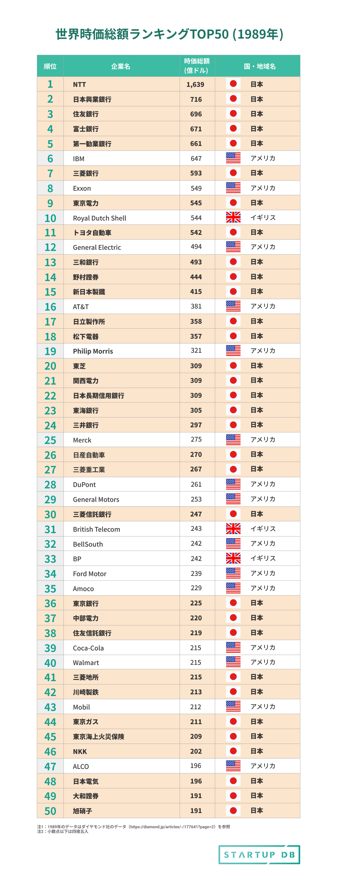 2023年世界時価総額ランキング。世界経済における日本の存在感はどう変わった?STARTUPS JOURNAL。